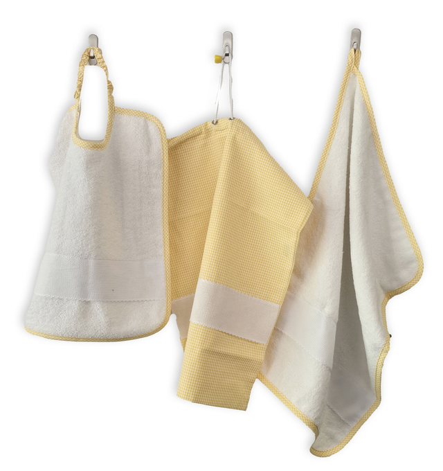 - Asciugamano 35x50 cm in spugna bianca, con asola;