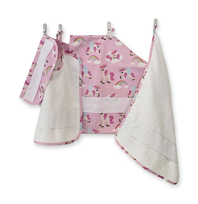 SET UNICORNI bianco 4 PEZZI nome ricamato