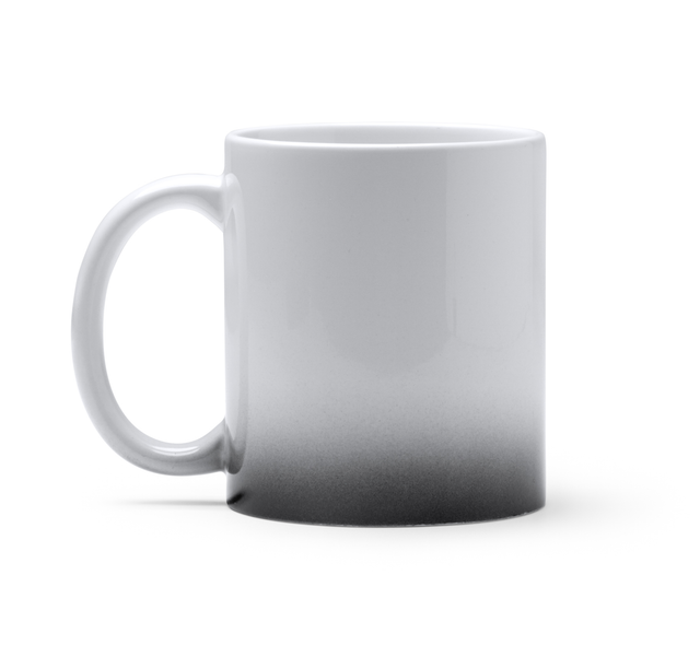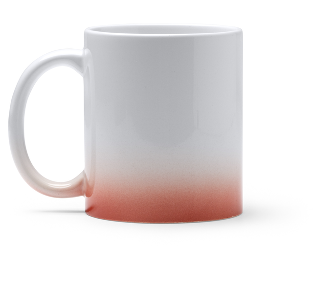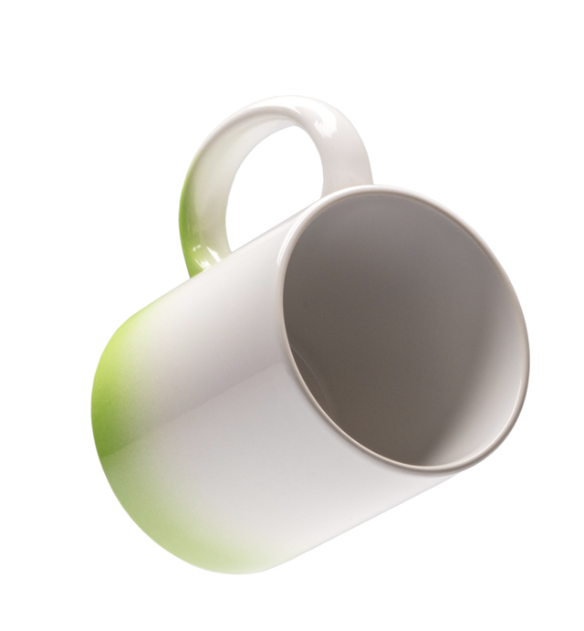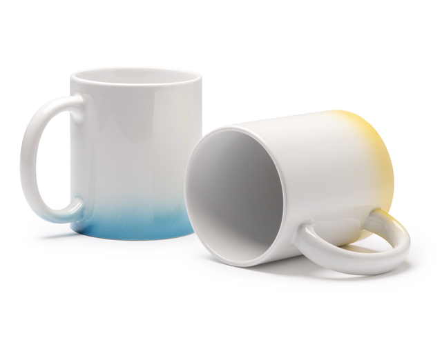 Tazza in ceramica biaca con base colore sfumato. Disponibile giallo, rossa, azzurra, nera.